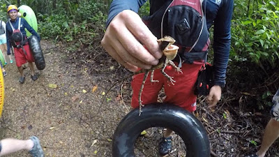 It started raining when we were almost to the cave, and we got in these old school buses and started hauling A up a pretty steep, rough, muddy hill! But we made it! Thankfully! And then we had a 20 minute hike through the rain forest, in the rain, in our swim suits, to the actual cave. When we complained about the rain, our tour guide said "well, it is a rain forest". True!